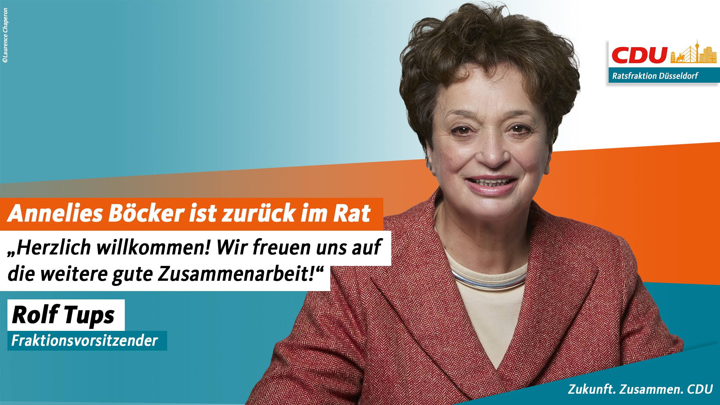 Neues Mitglied im Stadtrat ist Annelies Böcker. Die CDU-Politikerin wurde heute von Oberbürgermeister Dr. Stephan Keller verpflichtet. Sie rückt nach für Pavle Madzirov, der sein Mandat aus gesundheitlichen Gründen niedergelegt hat.