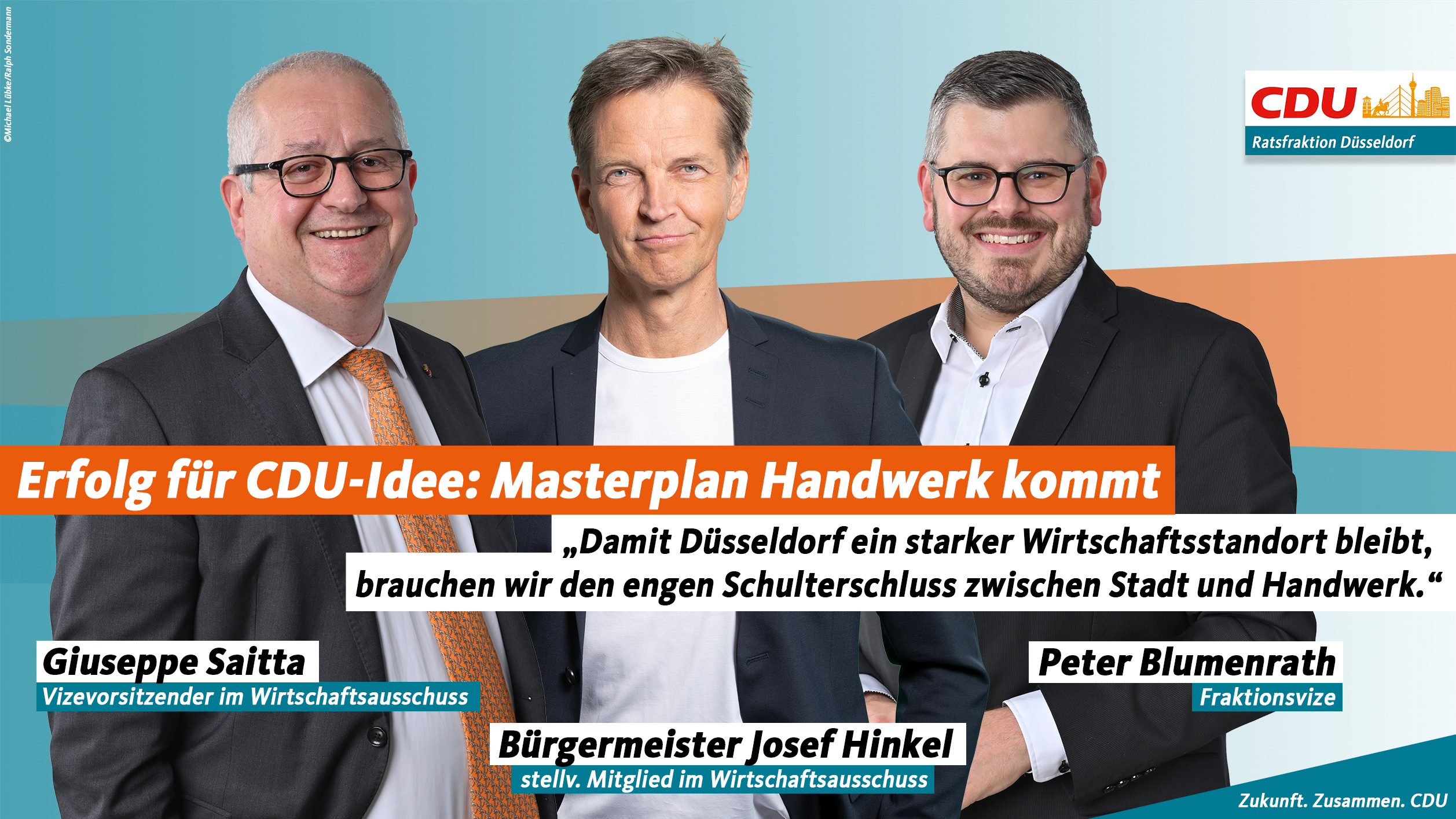 Eines unserer wichtigsten wirtschaftspolitischen Ziele wird Wirklichkeit: Noch in diesem Jahr bekommt Düsseldorf einen Masterplan für das Handwerk. Dazu haben gestern Oberbürgermeister Dr. Stephan Keller und Wirtschaftsdezernent Dr. Michael Rauterkus mit den Spitzen von Düsseldorfer Handwerkskammer und Kreishandwerkerschaft die Absichtserklärung unterzeichnet. Bei den Themen Stadtentwicklung, Mobilität, Klimaschutz, Gewerbeflächen, Wirtschaftsförderung, Digitalisierung, berufliche Bildung u. a. soll der Plan Stadtverwaltung und lokales Handwerk künftig noch enger zusammenbringen. Insgesamt sind 84 Vorhaben angedacht. Wir als CDU unterstützen beide Seiten – Stadt und Handwerk –, um den Wirtschaftsstandort Düsseldorf in seiner Stärke zu sichern und bestmöglich für die Zukunft weiterzuentwickeln.